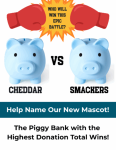 More details HERE – Scroll down to the Leaderboard to vote/give for “Cheddar” or “Smackers”